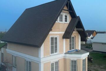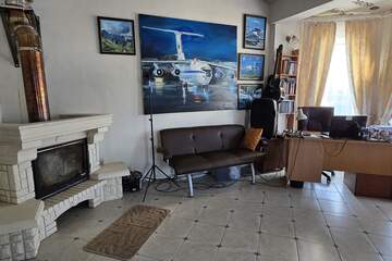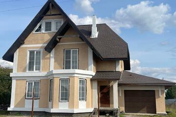 Фундамент заглублен на 2м, а сверху залита монолитная плита. Стены: железобетонный каркас, заполнитель стен - арболитовые блоки. Крыша: многослойная черепица Технониколь Сицилия. Электричество 30 кВт. Домашний гараж 43кв.м , под ним имеется погреб. На территории участка находится баня покрытая крышей, хозяйственный домик и огромный гараж 100 кв.м со смотровой ямой. В нескольких минутах ходьбы находится детский сад Калинка и автобусная остановка, рейсовый автобус 125. На следующий год рядом с садиком планируется строительство школы, а затем ФАПа. Документы полностью готовы к сделке.