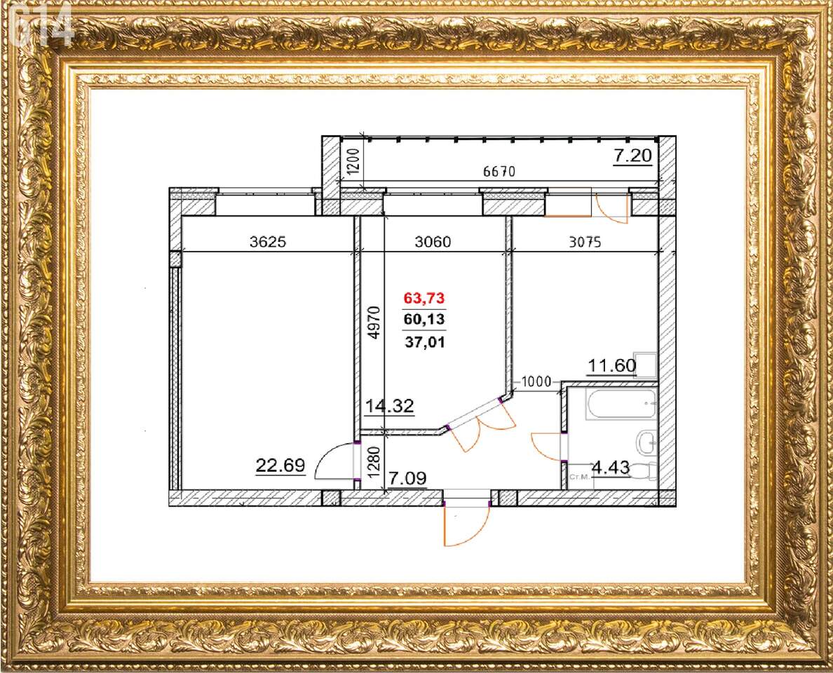63,7 м²